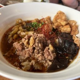 I came here for lunch on a weekday and this dish came out just a few minutes after ordering! I got the hell ramen level 1, which felt like "medium spicy" to me. I liked the variety of toppings and textures (pork skin, ground meat, mushroom, clam). Ultimately I think I prefer tonkatsu but this was super fun to try (especially if you like spice)!